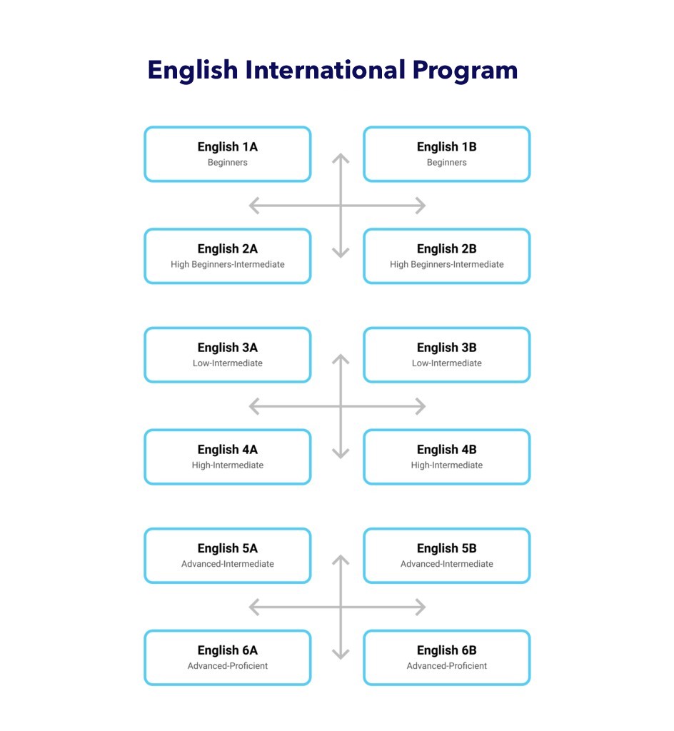 Introducing our English International Program, an innovative pedagogical approach crafted on cutting-edge second language learning research. This immersive program spans six levels, tailored to meet diverse language proficiency needs. Conducted face-to-face, the program offers intensive, full-time instruction totaling 18 hours per week, complemented by essential English lab sessions. The duration of the entire program varies, spanning up to six semesters, contingent upon your initial placement level.